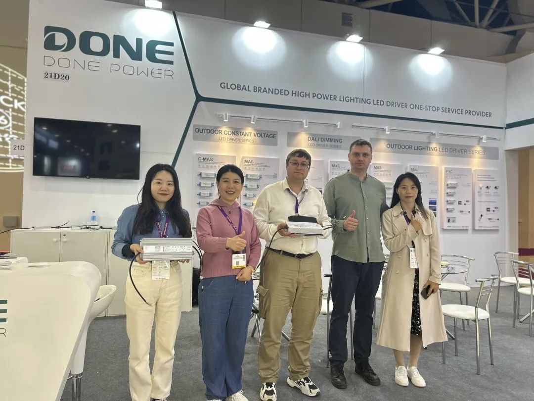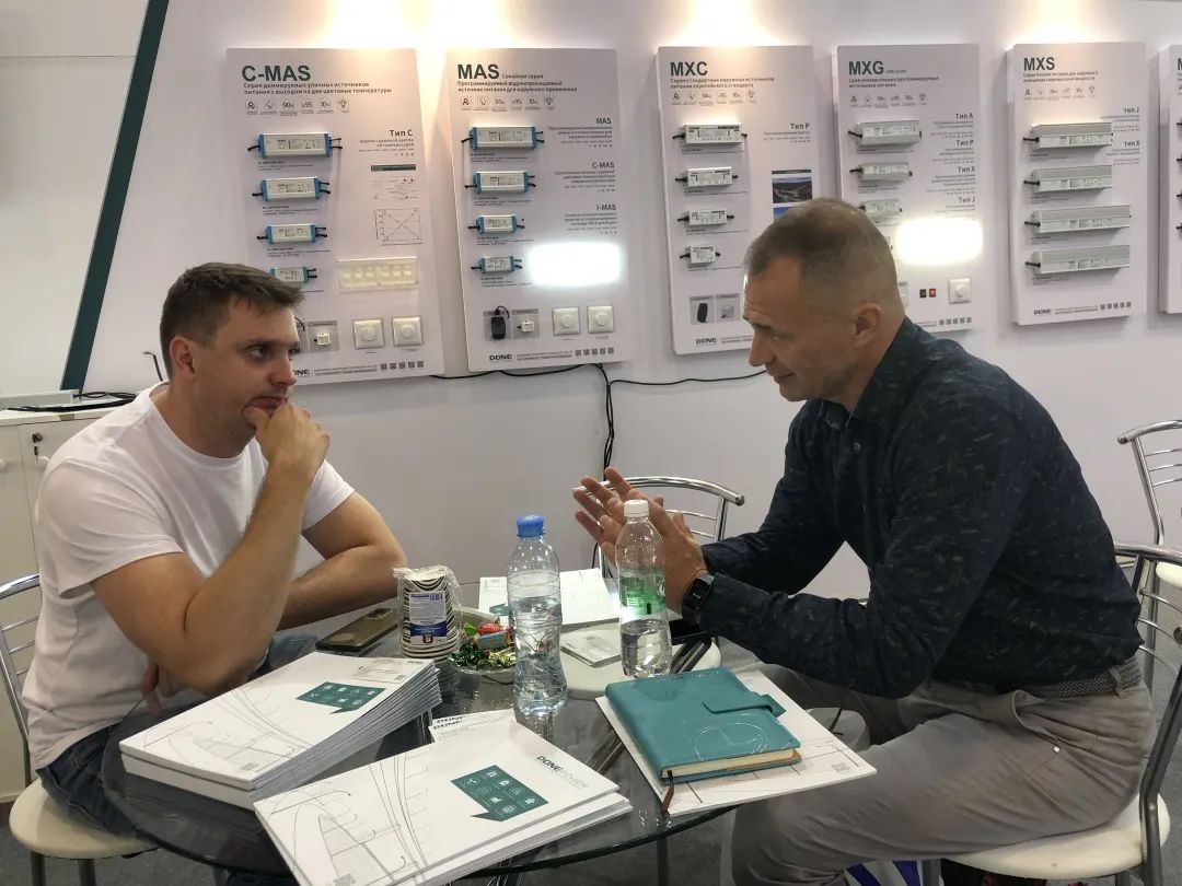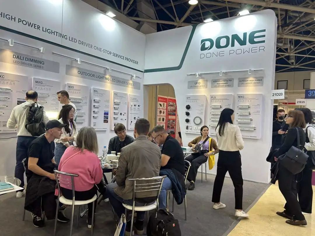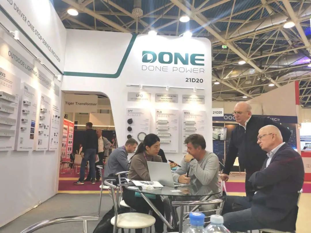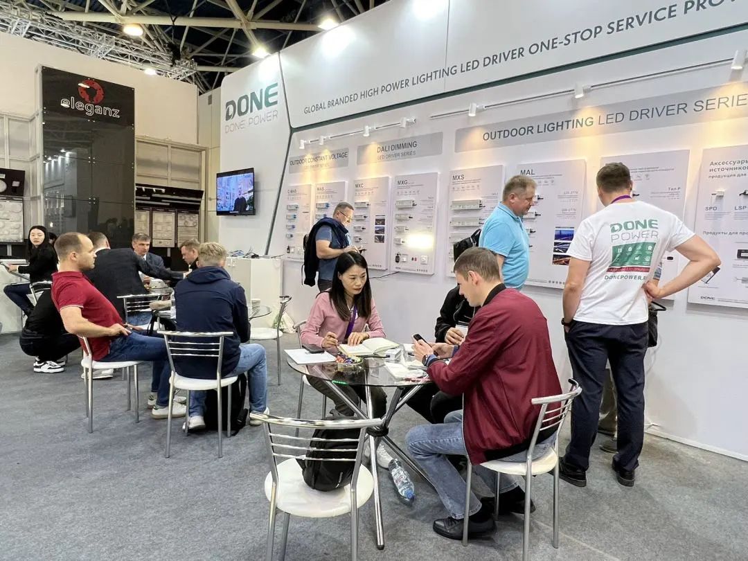 interlight moscow was held in moscow from september 18th to 21st, done, as a global one-stop brand service provider of high-power lighting led driver, our staff participated in this exhibition (booth no. 21d20) with full of enthusiasm and professional ability. at the exhibition site, the crowds were thronging, done attracted the attention and praise of many foreign customers. our hot products, dual-color temperature dimming led driver c-mas series, outdoor road lighting led driver mxg series, non-isolated ufo dimming led driver spf series, were also presented in the exhibition. with their unique design, excellent performance and reliable quality, these products attracted the attention of many foreign customers.