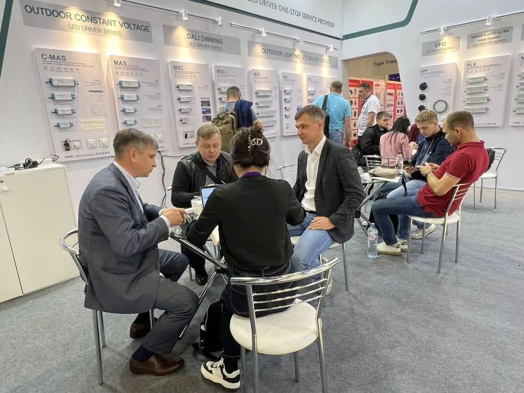 俄罗斯国际照明及建筑技术展览会于9月18日至21日在莫斯科举行,东菱电源作为全球大功率照明电源一站式品牌服务商,业务人员以饱满的热情和专业能力参加了这次展会,展位号为21d20。在展会现场,人潮涌动,吸引了众多国外客户的关注和赞扬。东菱电源的热销产品调光电源c-mas系列、户外道路电源mxg系列、非隔离ufo调光电源spf系列也在此次展会上亮相。这些产品以其独特的设计、卓越的性能以及可靠的质量,吸引了众多国外客户的目光。