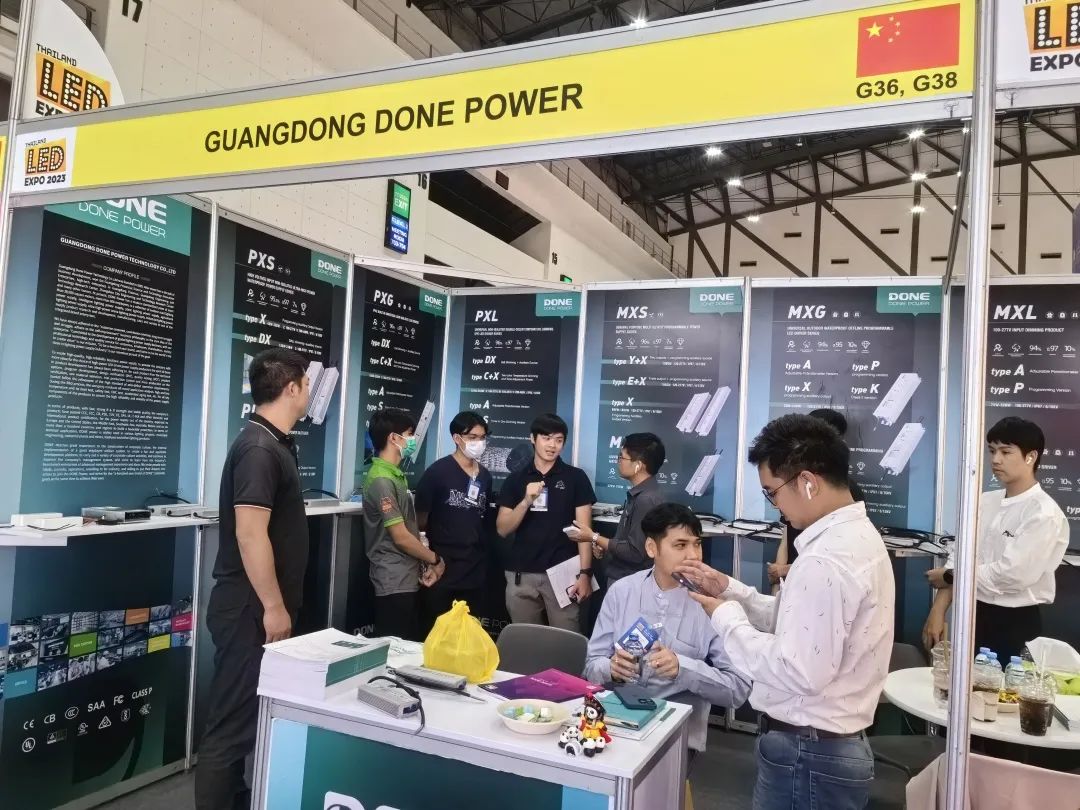 from september 20 to 22, done attended the 2023 led expo thailand at the bangkok international trade and exhibition center. the exhibition provided an opportunity to showcase our products to the thai and southeast asian markets. we demonstrated the european standard programmable led driver mas family series, dali2.0 programmable led driver pxg series, and ultra-high power outdoor lighting led driver mxg/pls series to the exhibition. during the exhibition, done booth was always crowded, and customers from thailand and neighboring countries showed great interest in our products on display. our business partners responded to all visitors' inquiries with professional and enthusiastic services on site and won their praise. many customers highly recognized and appreciated our products and expressed their willingness to have more in-depth business cooperation in the future. meanwhile, we welcome new and old customers to visit our booths g36 g38, and our professional business partners at are looking forward to your arrival.