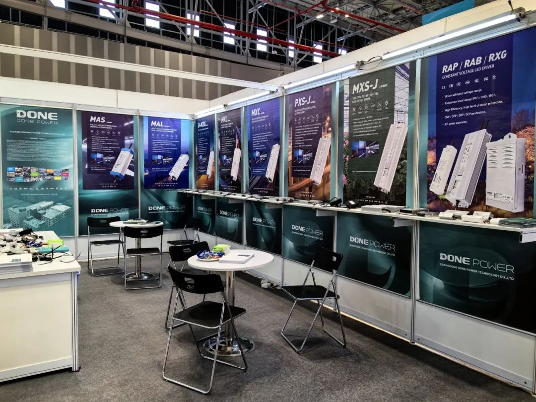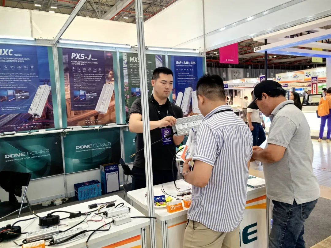 done exhibited a series of hot-selling led drivers, including dali dimming series d-mxg, two-colour temperature dimming series c-mas, ultra-high-power plant lighting series pls, constant-voltage led driver series rxg, and class ⅱ waterproof dimming series ras. it was well-received by the majority of guests at the exhibition, and further enhanced done's brand influence in the southeast asian market.