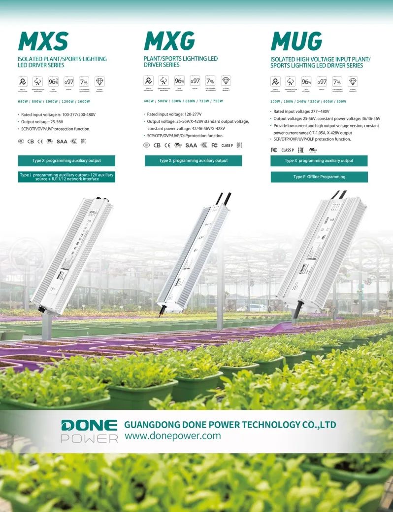 at this exhibition, done power will display a series of innovative products, including lora intelligent integrated communication driver mxg-l series, cat.1 intelligent integrated communication led driver mxg-t series, global outdoor road lighting led driver pxs series and global non-isolated industrial lighting led driver pxl series. these products not only represent our latest achievements in the field of high-power driver technology, but also demonstrate the company's deep understanding of market demand and pursuit of innovation.