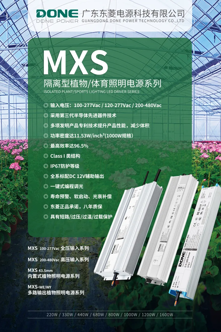而在"光健康·全光谱"智能照明&教育照明专场上,东菱电源的双级隔离大功率植物照明电源mxs系列大放异彩。mxs系列产品采用隔离双级方案,具有高效率、高可靠性、高稳定性等特点,广泛应用于植物工厂、温室大棚等现代农业领域,为植物生长提供了理想的光照环境。在第十一届中国led首创奖颁奖典礼上斩获优秀奖,再次证明东菱电源在植物照明领域的创新能力和技术实力。