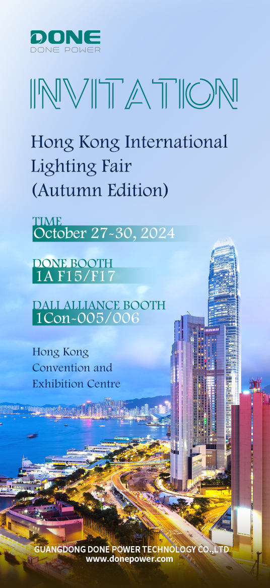 there are 4 days left before the opening of the 2024 hong kong international lighting fair (autumn edition). done power (done) is ready to go to hong kong to participate in this feast of the global lighting industry. in this exhibition, done will showcase the latest scientific and technological achievements and look forward to in-depth exchanges and common development with global customers and partners.