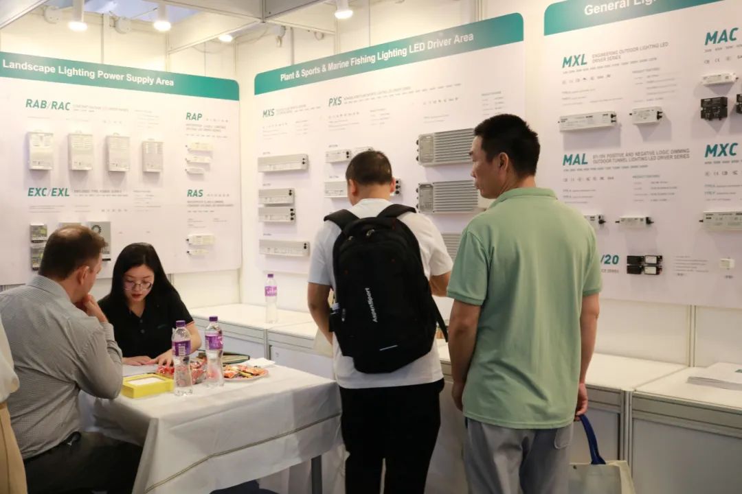 during the exhibition, done’s booth attracted a large number of domestic and foreign customers. the star products on display attracted many customers, including the lora/cat. 1 integrated communication led driver mxg-l/t series, rs485/plc/double colour temperature integrated communication led driver mas-r/z/c series, programmable european road lighting led driver mxk series, 200-480v non-isolated sports stadium integrated led driver pxs-a series, outdoor waterproof constant voltage power supply rxg series, etc.