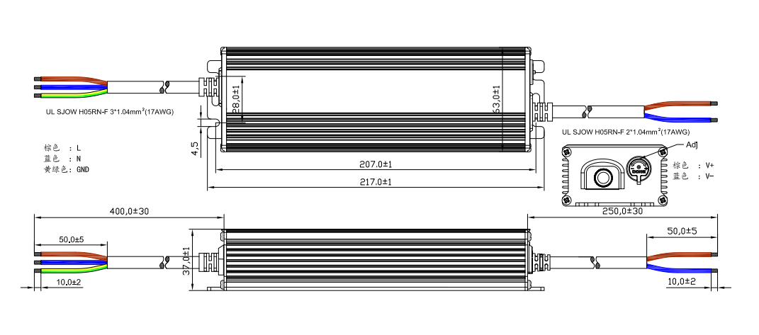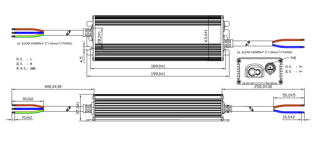 输入线材:ø8.2橡胶线3x1.0mm² x400mm