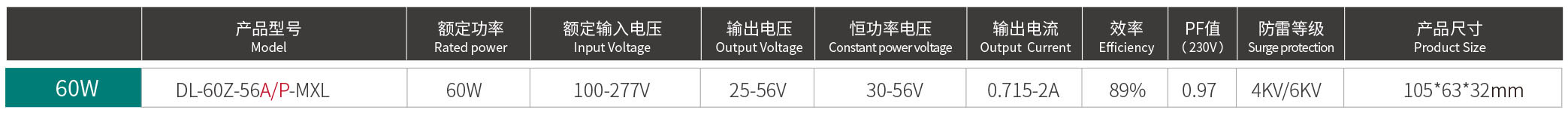 产品电性 :25-56v标准输出电压,30-56v 0.715-2a输出电压范围内功率恒定可调
