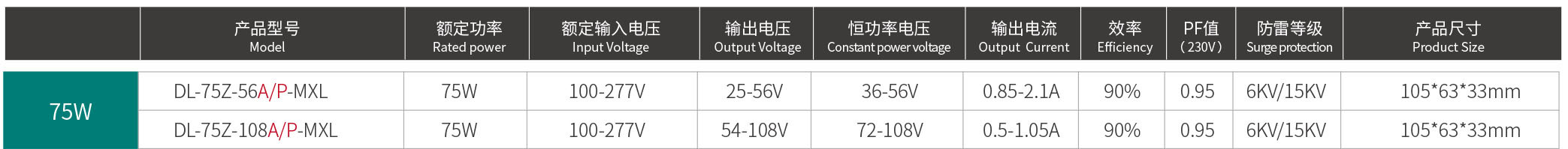 产品电性 :25-56v标准输出电压,36-56v 0.85-2.1a输出电压范围内功率恒定可调