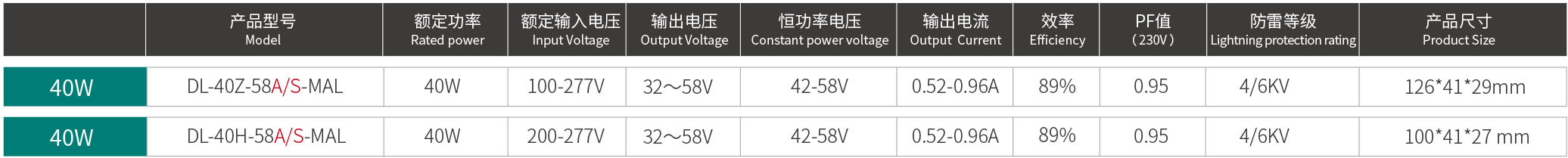 产品电性:32-58v输出电压,42-58v输出电压范围内功率恒定可调
