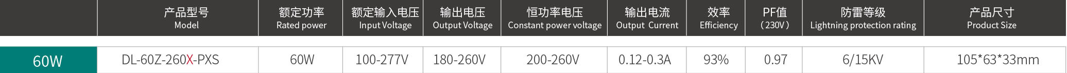 产品电性:180-260v高输出电压, 200-260v输出电压范围内功率恒定可调
