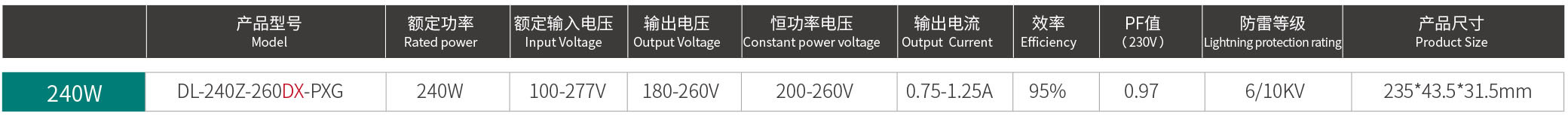 产品电性:180-260v高输出电压, 200-260v输出电压范围内功率恒定可调