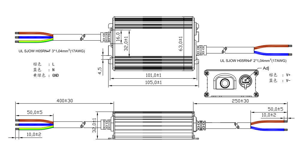 输入线材:ø8.2橡胶线3x1.0mm² x400mm